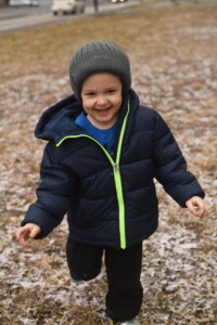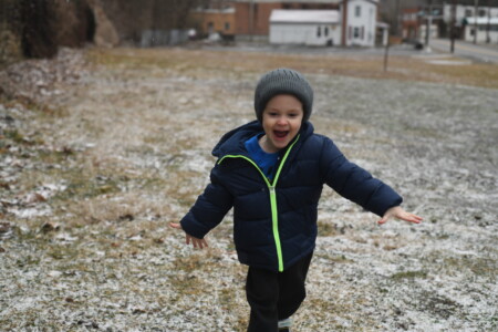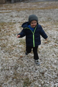 I didn’t think much could top “sack of potatoes” in David’s eyes, but lately I’ve been running ahead of him and inviting him to “catch Daddy,” trailing one hand so he can catch it, or, which he likes even better, giving him a big hug and picking him up when he catches me. It’s one of the things he’s quite verbal about – when we go to the playground or arrive on the grassy field I park on outside the place I rent when I’m there, as soon as I go to get him out of his car seat he tells he he wants to “catch Daddy on the grass.” And so we do. Or across the road if it’s too muddy, as it was earlier in the week.